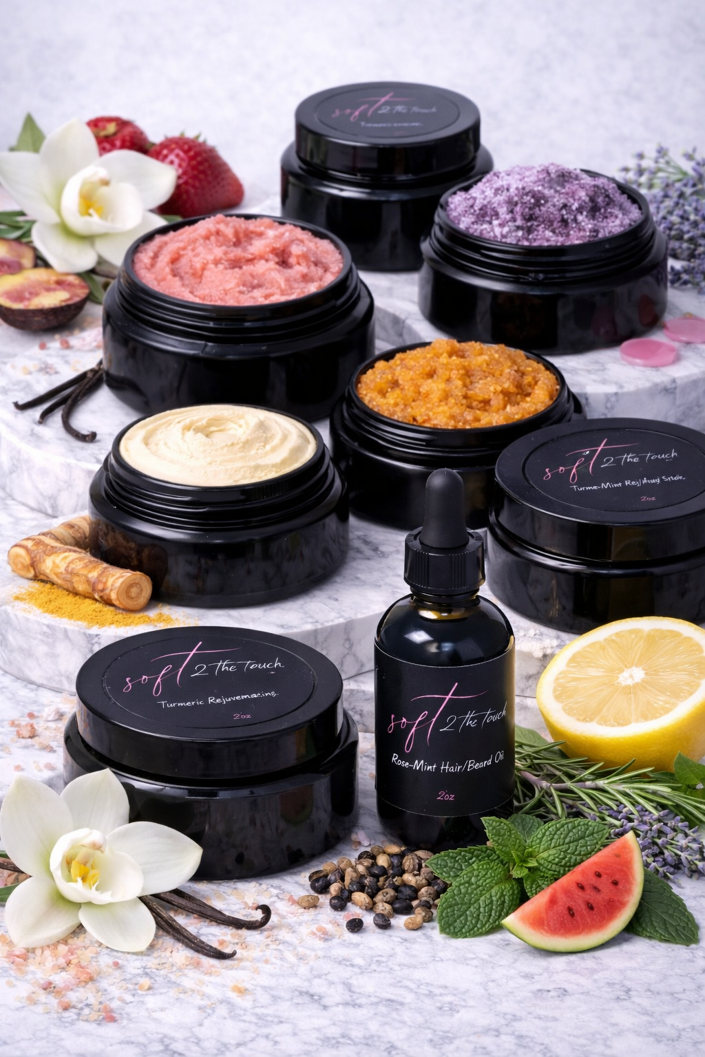 All scrubs and butters are infused with Shea Butter and Coconut Oil. Leaving your skin feeling Soft and smooth!